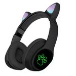 Audífonos Inalámbricos Led Bluetooth 5.0 Orejas de Gato Huellas Negro