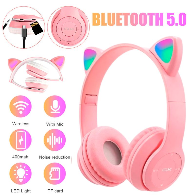 Audífonos Inalámbricos Orejas de Gato Luces Led