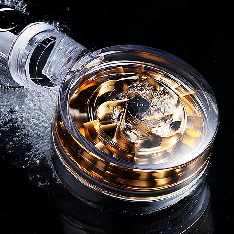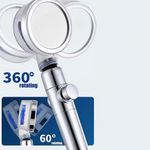 Este cabezal de ducha cuenta con una hélice turbo que permite un giro completo de 360 grados, asegurando una distribución uniforme del agua en todas las direcciones para una experiencia de ducha completa y relajante.