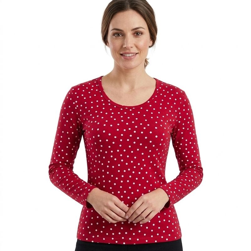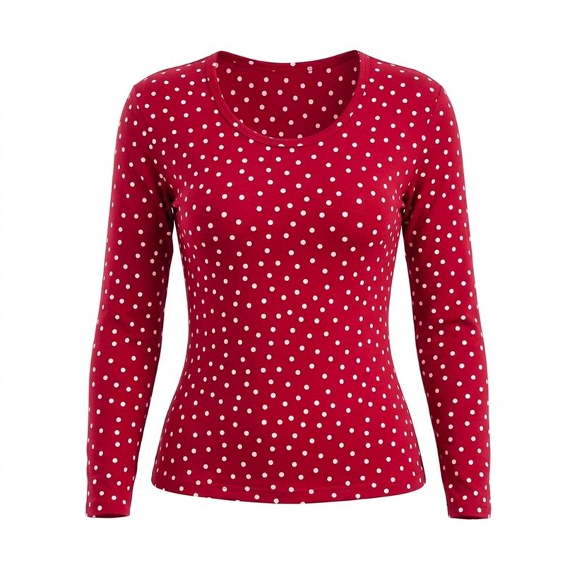 Camiseta Primera Capa de Lunares para Mujer Rojo Talla L-XXL