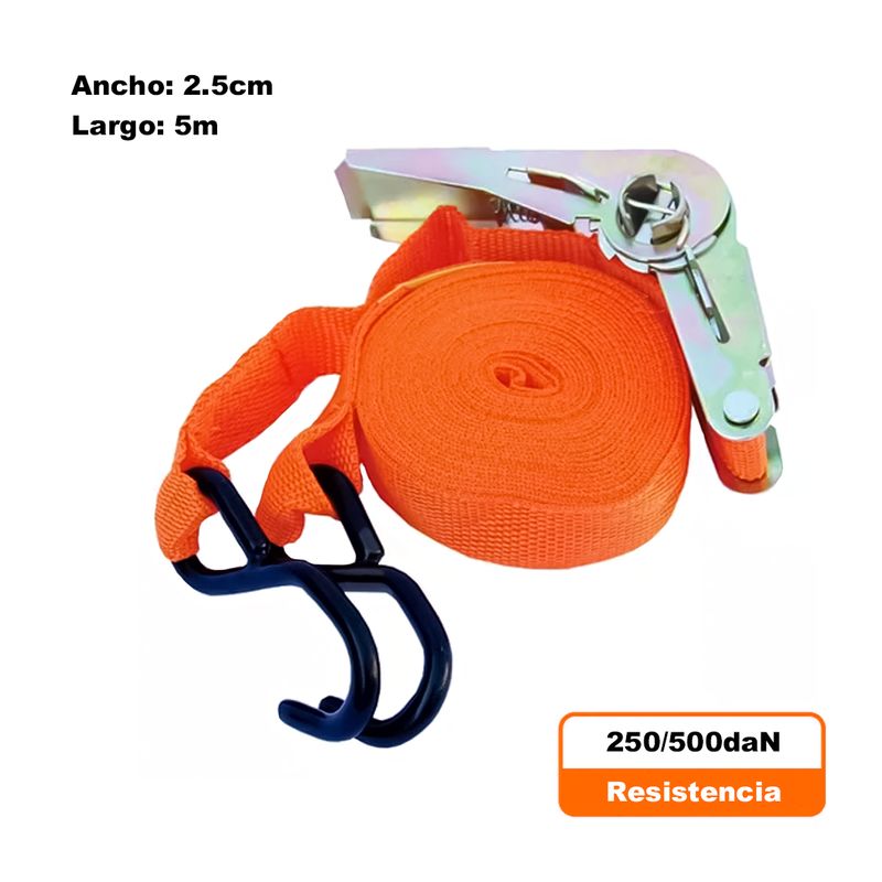 La cinta de carga de 5m tiene una carga de trabajo segura de 400kg y una resistencia a la rotura de 500kg. Perfecto para transportar cualquier objetos.