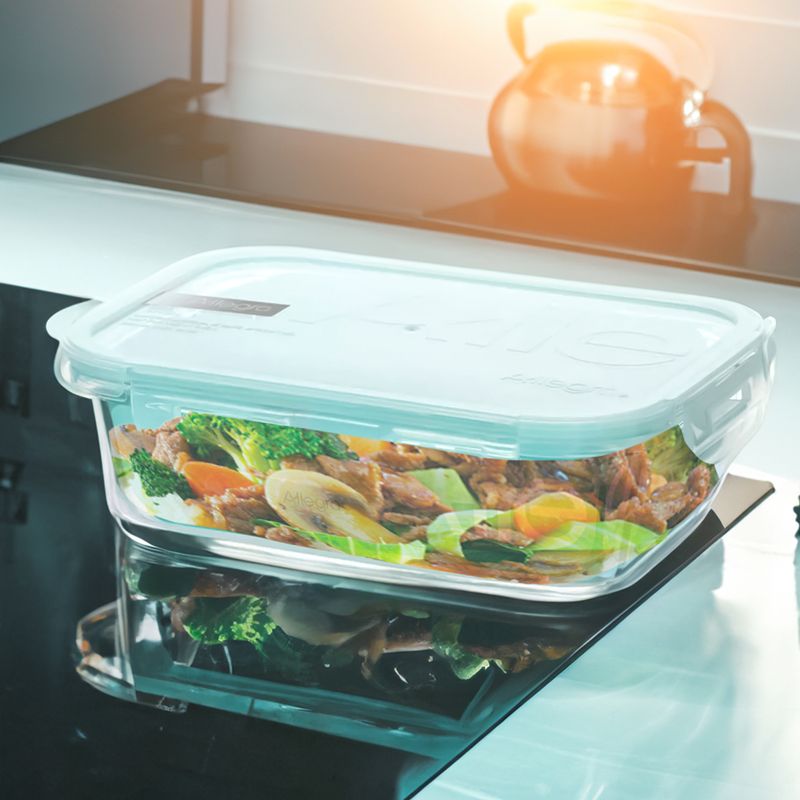 Contenedor de vidrio rectangular 1000 ml marca Allegra, es ideal para transportar comidas cuidando la vida útil y frescura de los alimentos , sin rastro de olores o manchas a lo largo de su uso independientemente del tiempo, es resistente a golpes y libre de BPA. Completamente herméticos con anillo de silicona en la tapa y alas que se enganchan en los 4 lados del contenedor. Apto para microondas y freezer.
