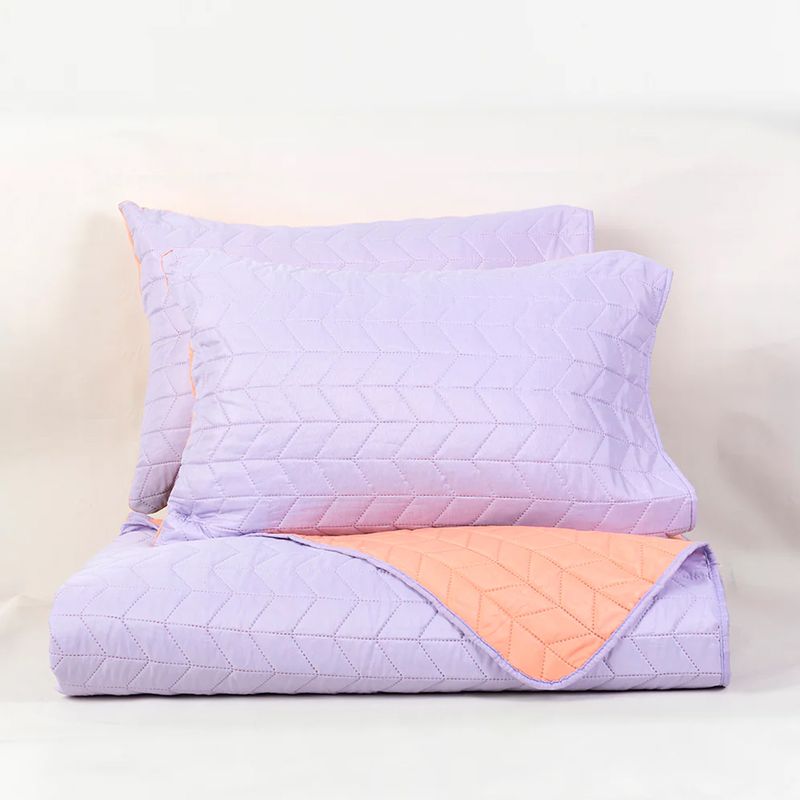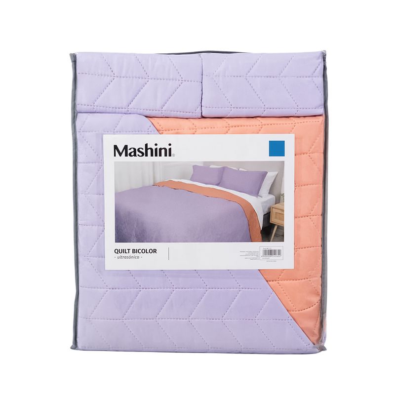 El set de Cubrecama Quilt de 3 piezas tamaño King incluye 1 Quit (260 x 240 cm) y 2 funda de almohada (50 x 90 cm), El set de Cubrecama Quilt es una opción perfecta para la decoración de tu habitación, Diseño Bicolor Lila-Naranjo le dan a tu dormitorio una estética única y revitaliza tu habitación inmediatamente.