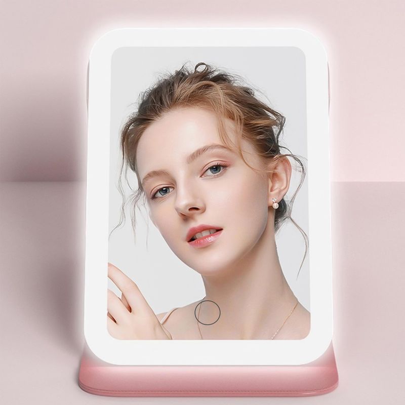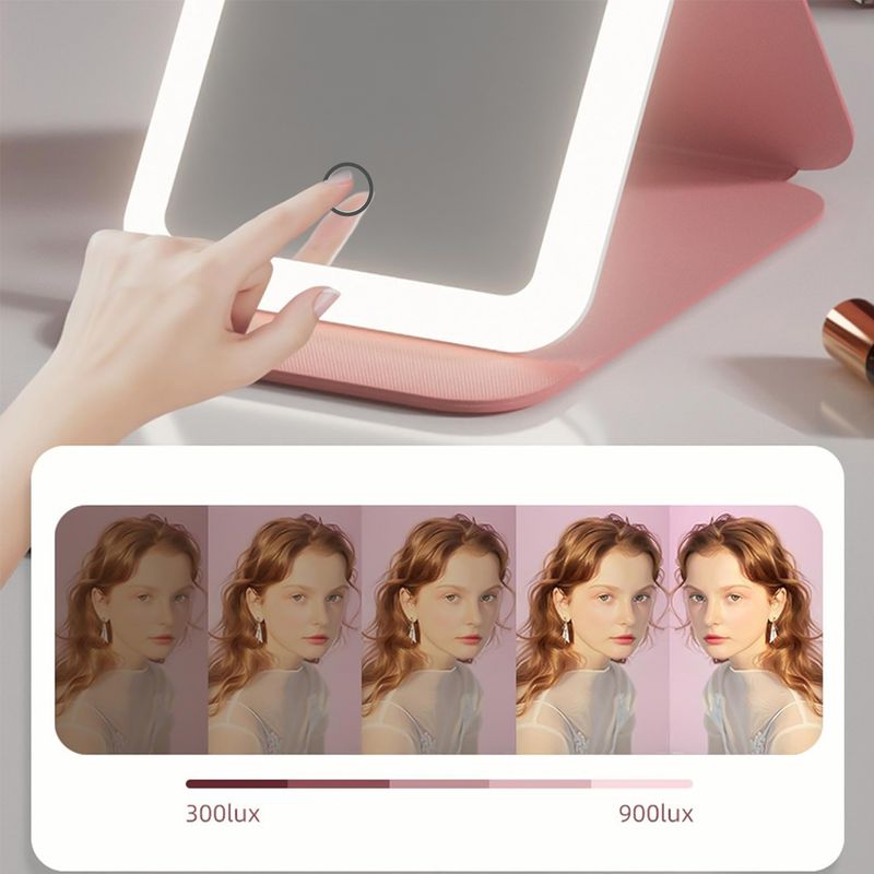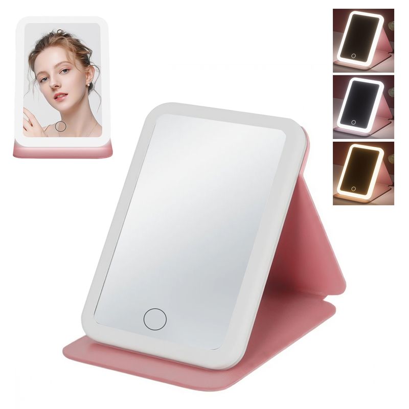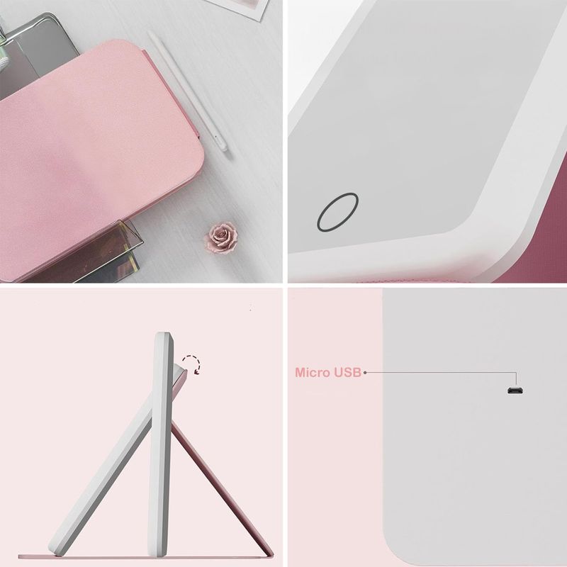 Espejo Luz LED Maquillaje Tocador USB Recargable 3 Modos Rosa