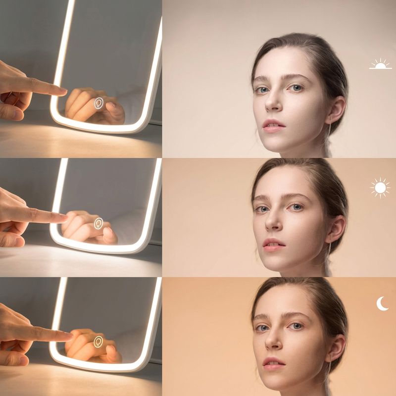 Este espejo de tocador está equipado con iluminación LED lo que te permite aplicar maquillaje o hacer tu rutina de cuidado de la piel con facilidad, independientemente de las condiciones de iluminación en tu habitación.