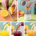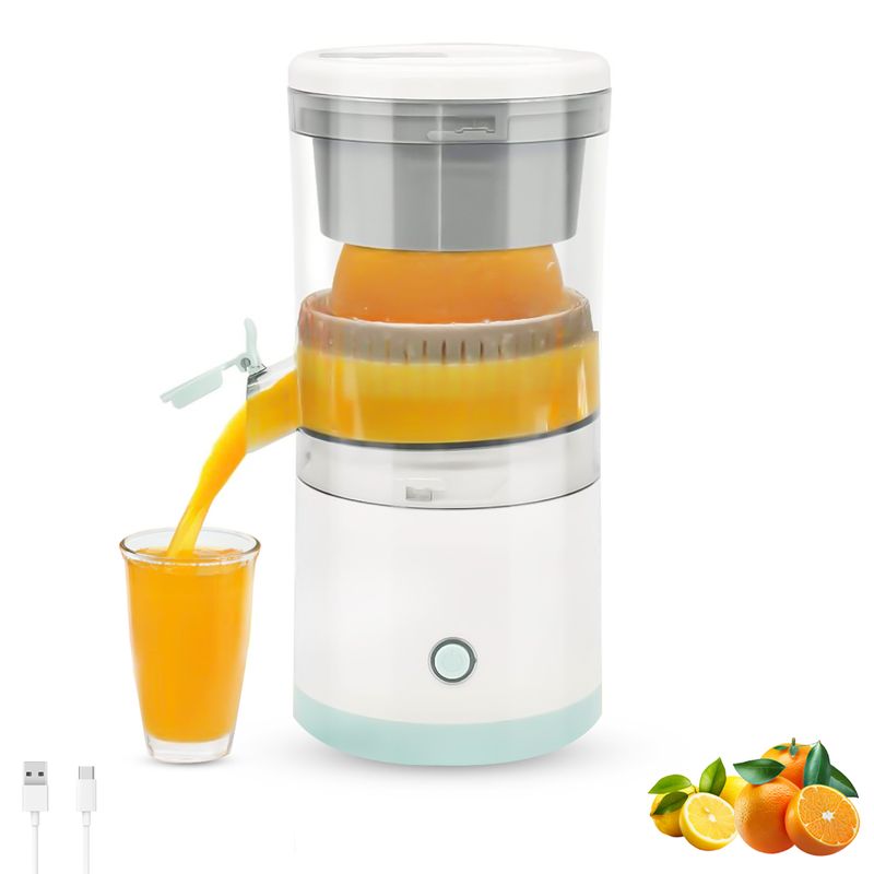 Su diseño inalámbrico y recargable por USB te permite usarlo en cualquier lugar, sin necesidad de esfuerzo manual. Además, su sistema de extracción a 360° maximiza el rendimiento del jugo, separando eficazmente los residuos.
