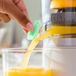 Su funcionamiento es simple corta la fruta, colócala en el vaso, cierra la tapa y presiona un botón para que el exprimidor haga el trabajo automáticamente.
