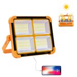 Este Foco Linterna tiene 288 LED, proporciona un brillo de hasta 10000 lm con 5 modos ajustables y brillo regulable. Esta Lámpara LED tiene una batería de 6000 mAh, se puede cargar a través de USB o panel solar y también sirve como banco de energía. Es portátil, está hecho de material ABS resistente.