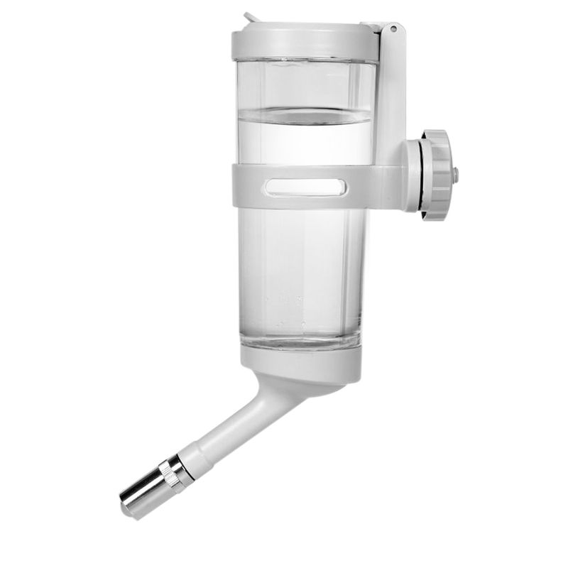 Gran dispensador de agua de cristal para mascotas colgante, perfecto para kennel con rejas o para espacios pequeños, no ocupa espacio, solo abre la tapa superior del dispensador para llenarlo de agua potable, si nuestra mascota es primera vez que usarán un dispensador con punta, ponle alguna crema de nutritiva para mascotas en la punta, así se le será más fácil de aprender como usarlo.