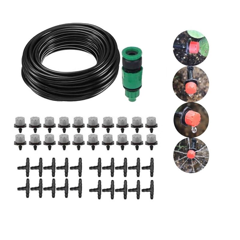 Este KIT DE RIEGO tiene un amplio uso, podemos utilizarlo para regar cultivos, flores, plantas interiores o exteriores, e incluso conectarlo a timer de riego (no incluido) y dejar completamente automático el sistema. También este kit permite un ahorro de 70% de agua.