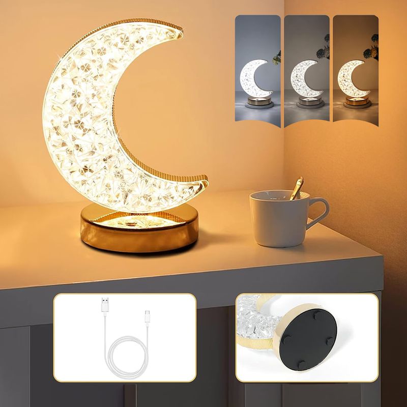 Lámpara Mesa Diseño Luna Creciente Recargable 3 Modos Usb
