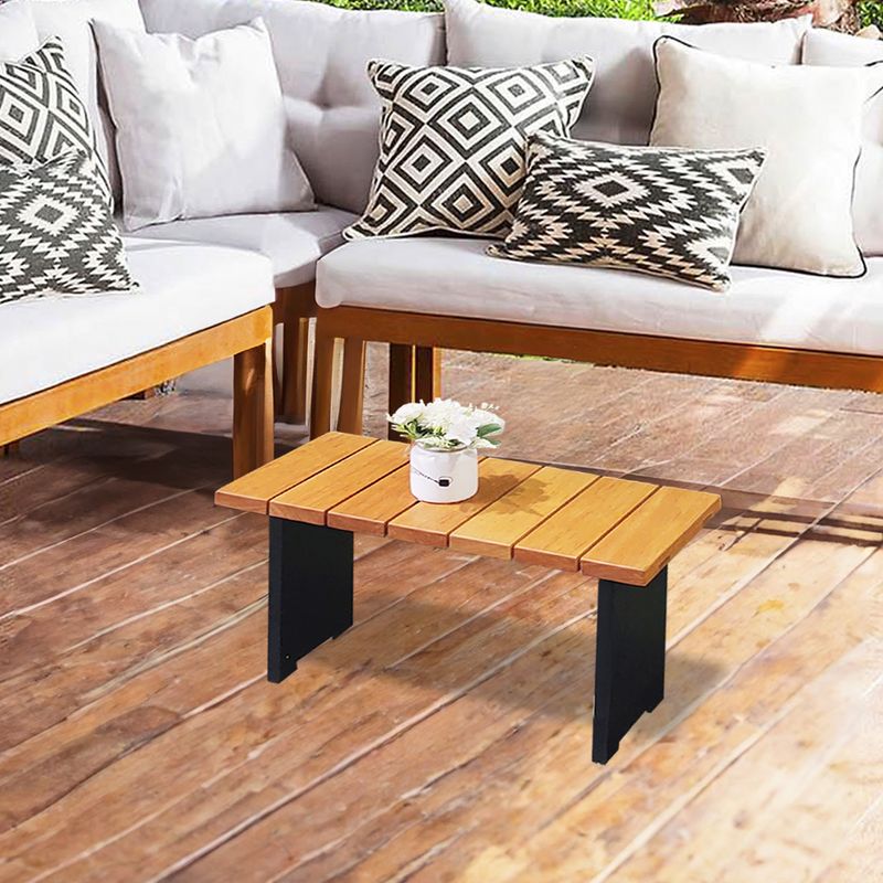 Hermosa Mesa Decorativa de madera y base de aluminio. Perfectamente adaptados para exteriores, en ellos encontramos el espíritu minimalista y comodidad acogedora.
