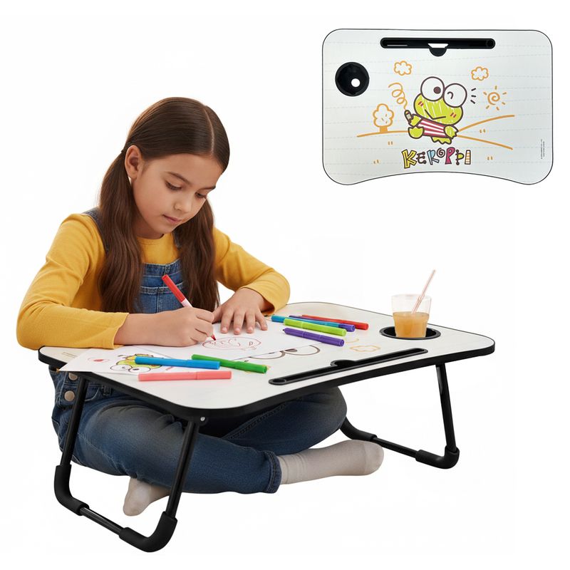 - Diseño: Con el icónico y popular diseño de Keroppi, esta mesa es ideal para inspirar la creatividad y el amor por el aprendizaje. Su color blanco y los gráficos sutiles se integran perfectamente en cualquier decoración.
