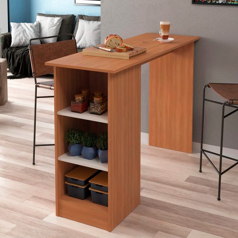 Mueble Desayunador Isla Cocina Ravena Con Estantes Freijo/Off White