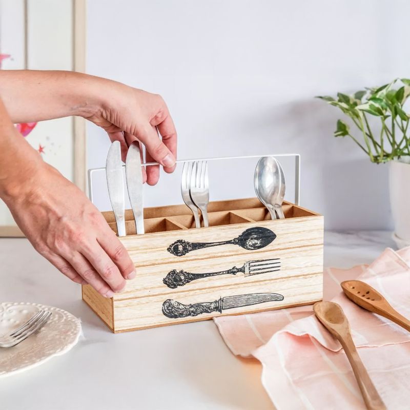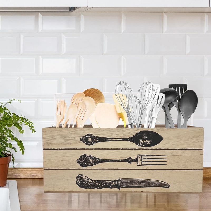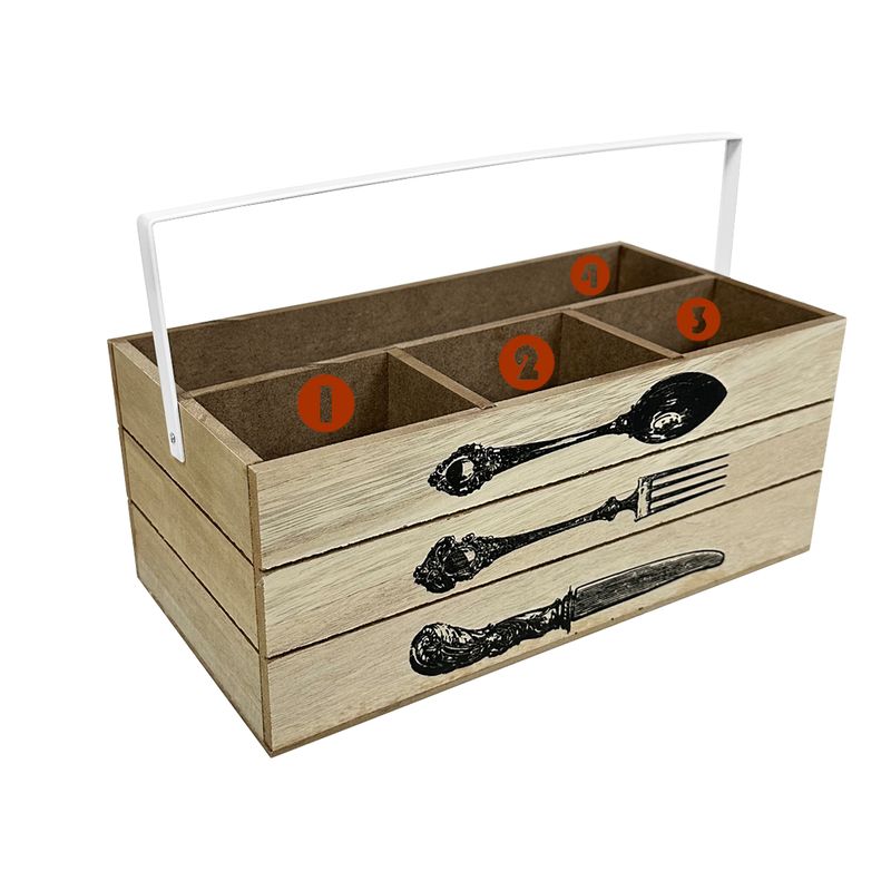 El Organizador de Utensilios de madera tiene 4 compartimentos. Puedes almacenar todos tus utensilios de cocina fácil y ordenadamente. La forma rectangular puede caber muy bien en cualquier rincón de encimera o cocina sin ocupar mucho espacio.