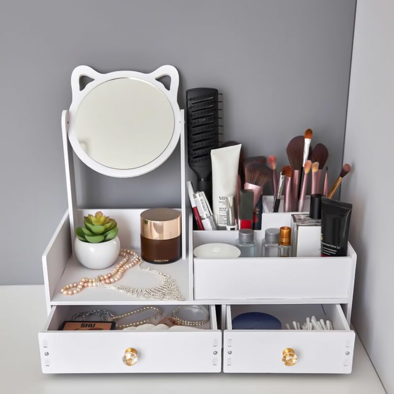 Organizador Tocador Con Espejo Maquillaje Joyero Blanco
