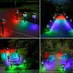 Las Estacas LED solares emiten luz RGB, miden 38cm de alto y 9 cm de ancho. Las Estacas vienen con batería recargable y panel solar, que convierte la energía solar de manera eficiente durante el día y durará horas de iluminación por la noche.