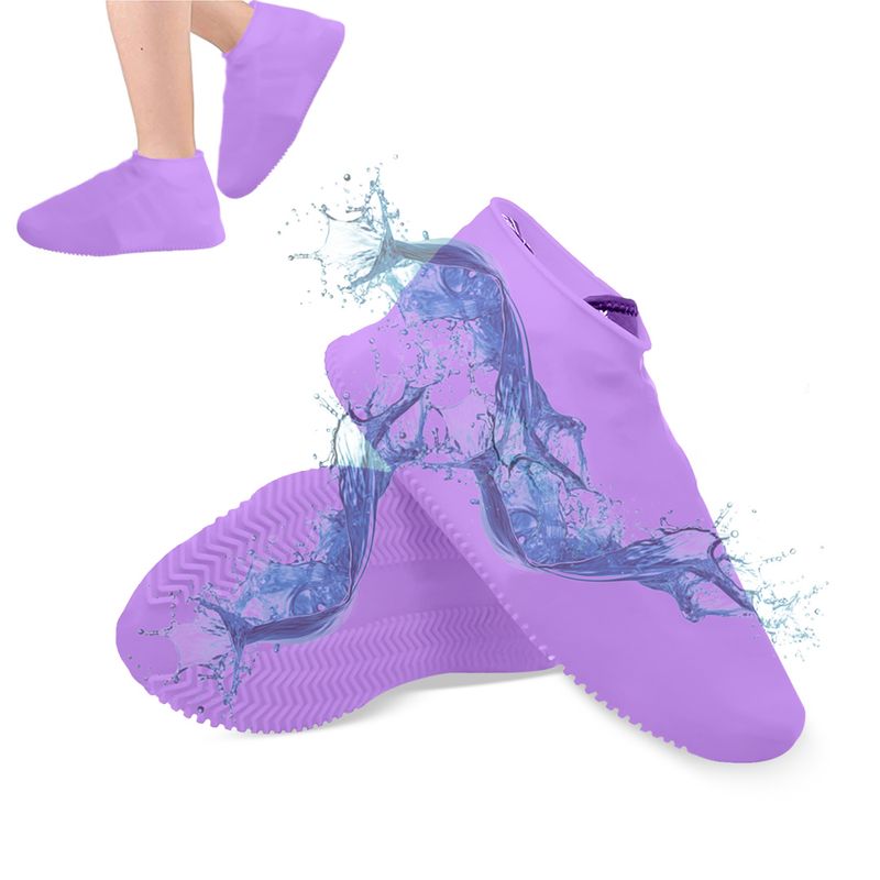 Par Fundas Impermeables Cubre Zapatos Silicon Morado Talla S 30-34