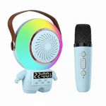 Parlante Astronauta Karaoke LED BT USB Con Micrófono Celeste