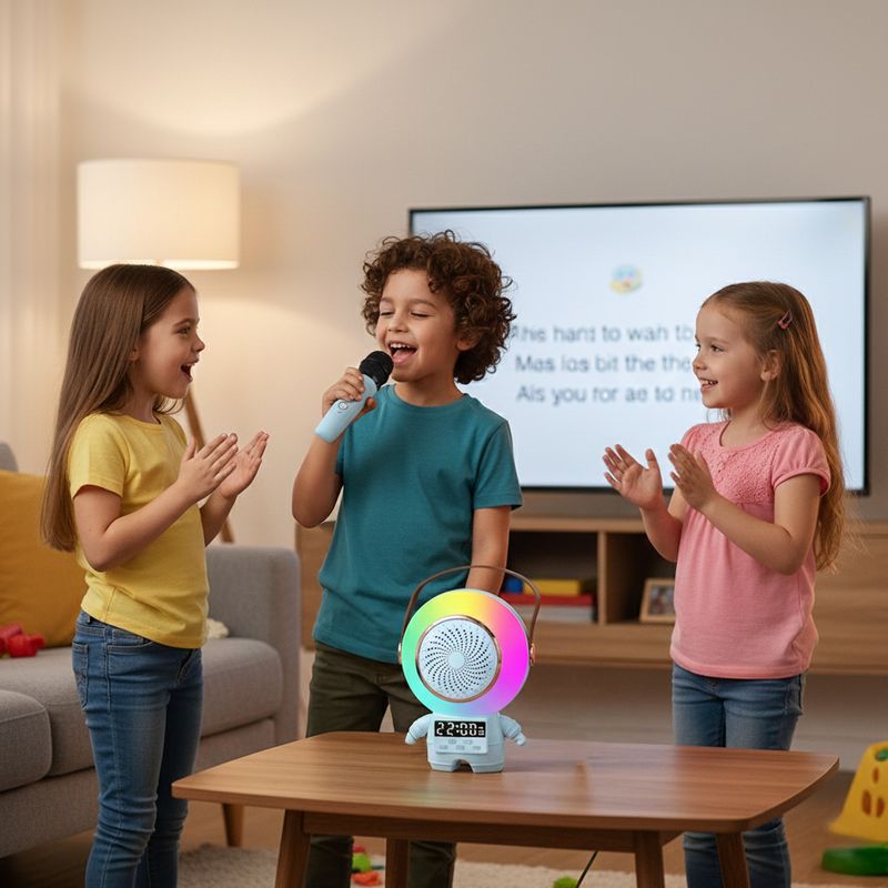 Parlante Karaoke en forma de Astronauta es la respuesta. Ideal para niños, fiestas familiares o simplemente para un rato de entretenimiento musical.