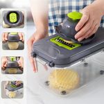 Características:- Versatilidad Total: Incluye 9 cuchillas intercambiables para picar en cubos (grandes y pequeños), rebanar, rallar, hacer cortes tipo tiras juliana.