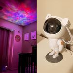 La cabeza del Astronauta contiene un imán integrado que soporta rotación de 360° para ajustar la cabeza para cambiar la dirección y la posición de la proyección. El proyector de nebulosa puede proyectarse en cualquier lugar que puedas imaginar, proporcionando una luz decorativa maravillosa y de ensueño para tu hogar, iluminando tu techo con cielos estrellados