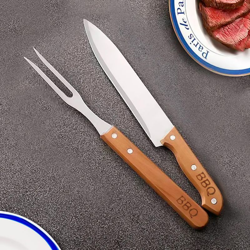 Incluye un cuchillo y tenedor , ideal para cortar y sujetar para servir tus carnes favoritas. Además, viene en un práctico estuche que facilita su almacenamiento y transporte, asegurando que siempre esté listo cualquier ocasión.