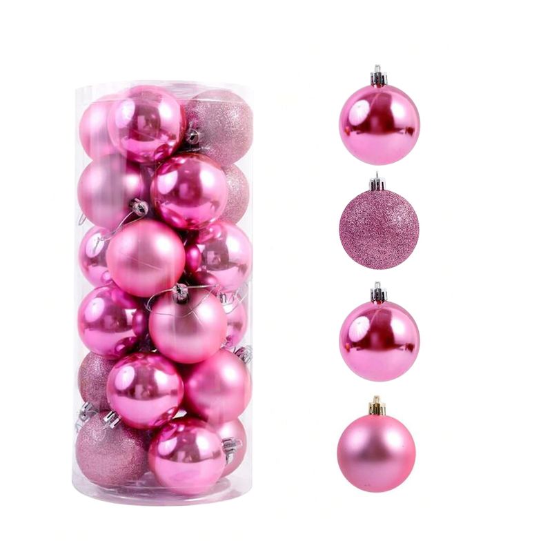 Set 24 Esferas Bolas de Navidad 8 cm Rosa Decoración