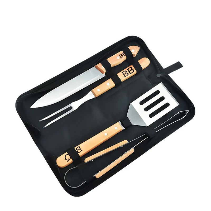 Incluye Cuchillo,Tenedor, Pinza y Espátula, ideal para cortar y agarre firme para manipular alimentos con facilidad y seguridad. Además, viene en un práctico estuche que facilita su almacenamiento y transporte, asegurando que siempre esté listo cualquier ocasión.
