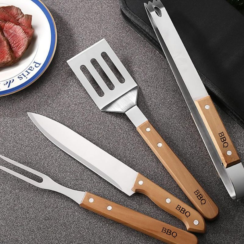 Este set está fabricado con materiales de alta calidad que garantizan su durabilidad y resistencia, convirtiéndolo en el compañero perfecto para tus reuniones de Asados familiar. Su elegante mango de madera proporciona un agarre cómodo y control durante el uso.