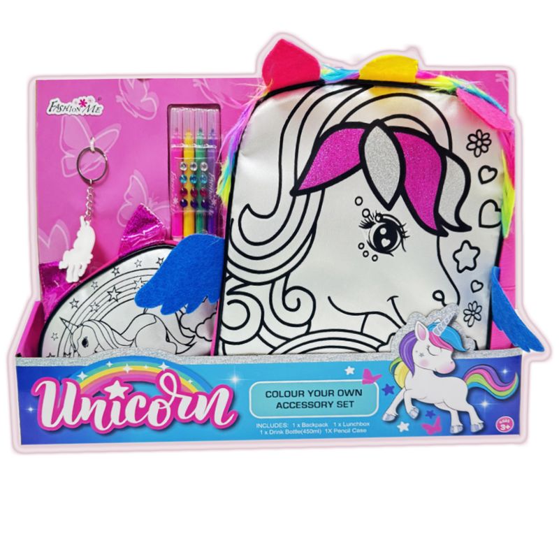 Set Mochila + Estuche de Unicornio Para Colorear Con Plumones