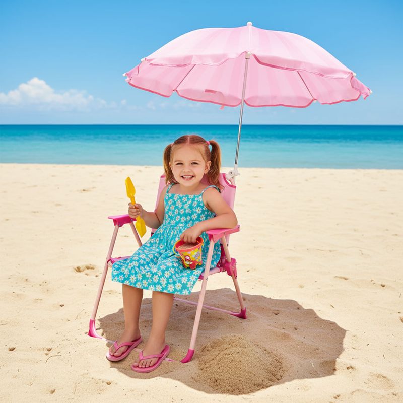 Incluye: 1 Silla Plegable y 1 Sombrilla Plegable con clip de sujeción.