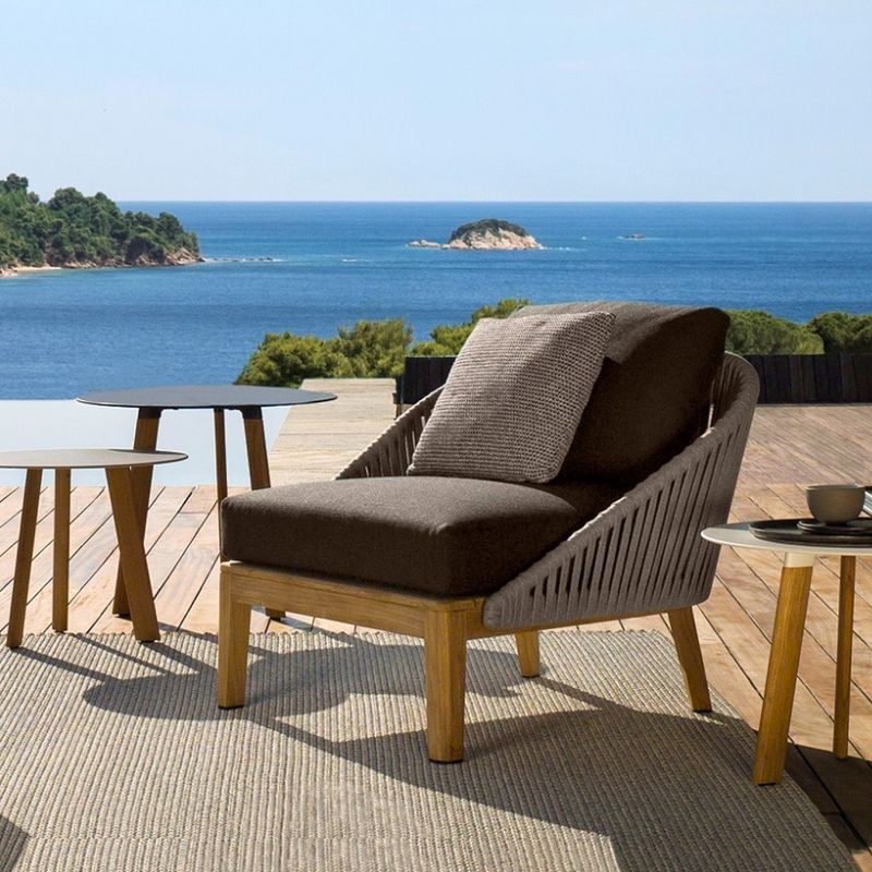 Un sillón que se puede colocar en cualquier lugar al aire libre, para que la comodidad no se limite a ningún rincón de tu hogar. Un respaldo de asiento tejido de ratán, combinado con un fondo de madera maciza de alta calidad y un marco de aluminio, da consideración tanto a la practicidad como a la belleza.