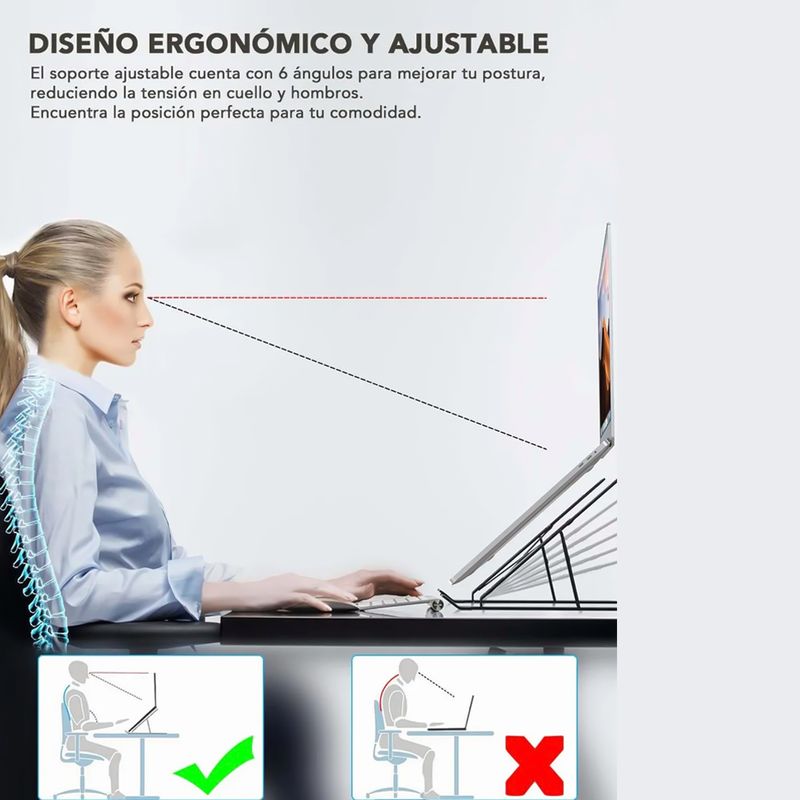 ¡No comprometas tu salud ni tu productividad! Encuentra la posición perfecta para tu comodidad y maximiza la vida útil de tu equipo con este soporte ergonómico.