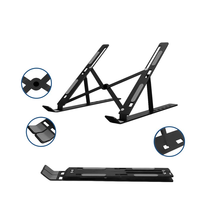 - Mejor Ventilación: El diseño abierto (tipo "Z" o triangular) permite un flujo de aire óptimo debajo de tu laptop, ayudando a disipar el calor y previniendo el sobrecalentamiento del equipo.