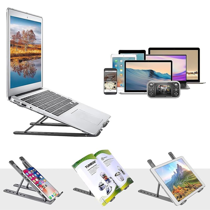 - Diseño Ergonómico y Ajustable: El soporte cuenta con 8 ángulos diferentes para elevar la pantalla de tu dispositivo a la altura ideal, mejorando tu postura y reduciendo significativamente la tensión en tu cuello y hombros.