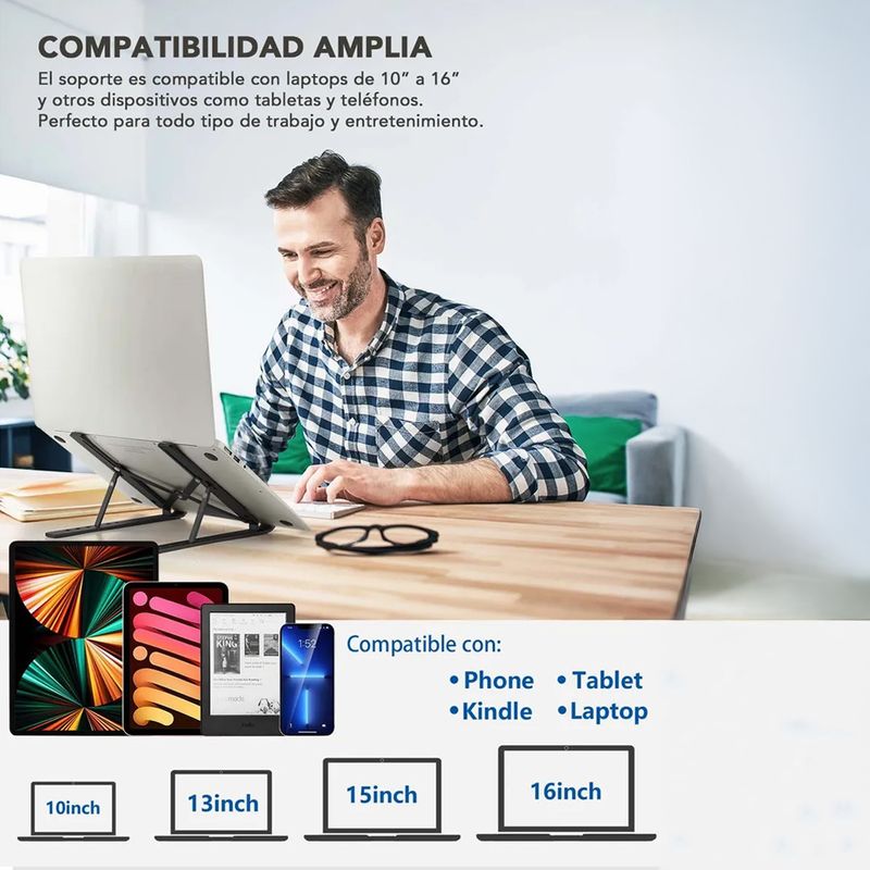 - Amplia Compatibilidad: Es perfecto para laptops de 10" hasta 16". También es compatible con tablets, teléfonos y dispositivos como Kindle.